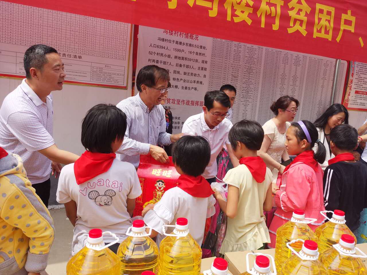 為踐行“誠信立業(yè),造福社會”的企業(yè)宗旨,2017年5月25日上午,“端午”、“六·一”雙節(jié)來臨前夕,在民建阜陽市委負責人張永俠、吳永利,阜陽市扶貧辦張峰,集團董事長張濤的帶領下,集團公司職工組成慰問團前往臨泉縣文塘鎮(zhèn)馮樓村進行“扶助貧困家庭,關愛留守兒童”慰問活動。