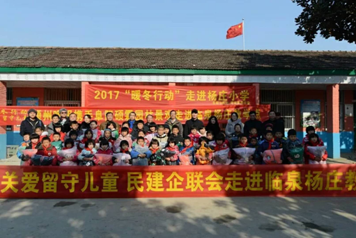 由潁州晚報(bào)組織的大型公益活動(dòng)2017年“暖冬行動(dòng)”首次揚(yáng)帆起航。民建阜陽(yáng)市委主委吳永利、民建阜陽(yáng)市企業(yè)家聯(lián)誼會(huì)副會(huì)長(zhǎng)張濤(廣宇集團(tuán)董事長(zhǎng))、臨泉縣委副書(shū)記李向章、阜陽(yáng)市碩霖園林景觀工程有限公司總經(jīng)理周夢(mèng)茹、阜陽(yáng)日?qǐng)?bào)社社長(zhǎng)張洪、潁州晚報(bào)總編輯李生組成慰問(wèn)團(tuán)前往臨泉縣呂寨鎮(zhèn)楊莊小學(xué)開(kāi)啟“暖冬行動(dòng)”的首站。 寒冬來(lái)臨,為55名留守兒童送去嶄新的棉衣,阜陽(yáng)日?qǐng)?bào)社全體員工、阜陽(yáng)新華書(shū)店也熱心加入其中,為楊莊小學(xué)無(wú)償捐贈(zèng)圖書(shū),“博學(xué)圖書(shū)館”也正式掛牌。課后,幾十個(gè)孩子們蜂擁而至,紛紛前來(lái)借書(shū)、讀書(shū)。溫暖的陽(yáng)光下,手捧翹首以待的圖書(shū),臉上流露著花一般的笑容。 公益需要每一個(gè)人的行動(dòng)力,為了讓冬天因我們而溫暖,讓你我一起與希望同行 。一份愛(ài)心,溫暖寒冬。